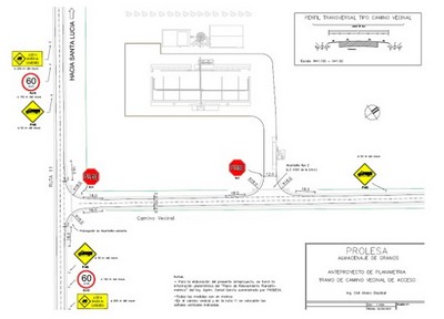 Proyecto ejecutivo de acceso sobre Ruta 5. Incluyó verificación de planimetría, altimetría, drenaje pluvial y definición de pavimentos.